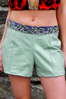 Contains: Cute knit shorts with print detail on back and mint colored front.